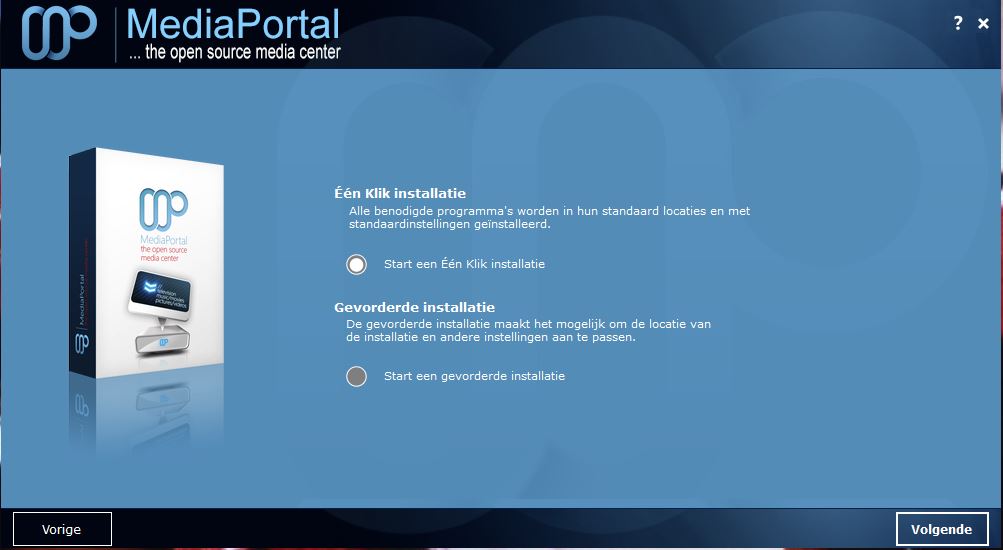 Kies voor de 'Één klik installatie' en klik op 'Volgende'.